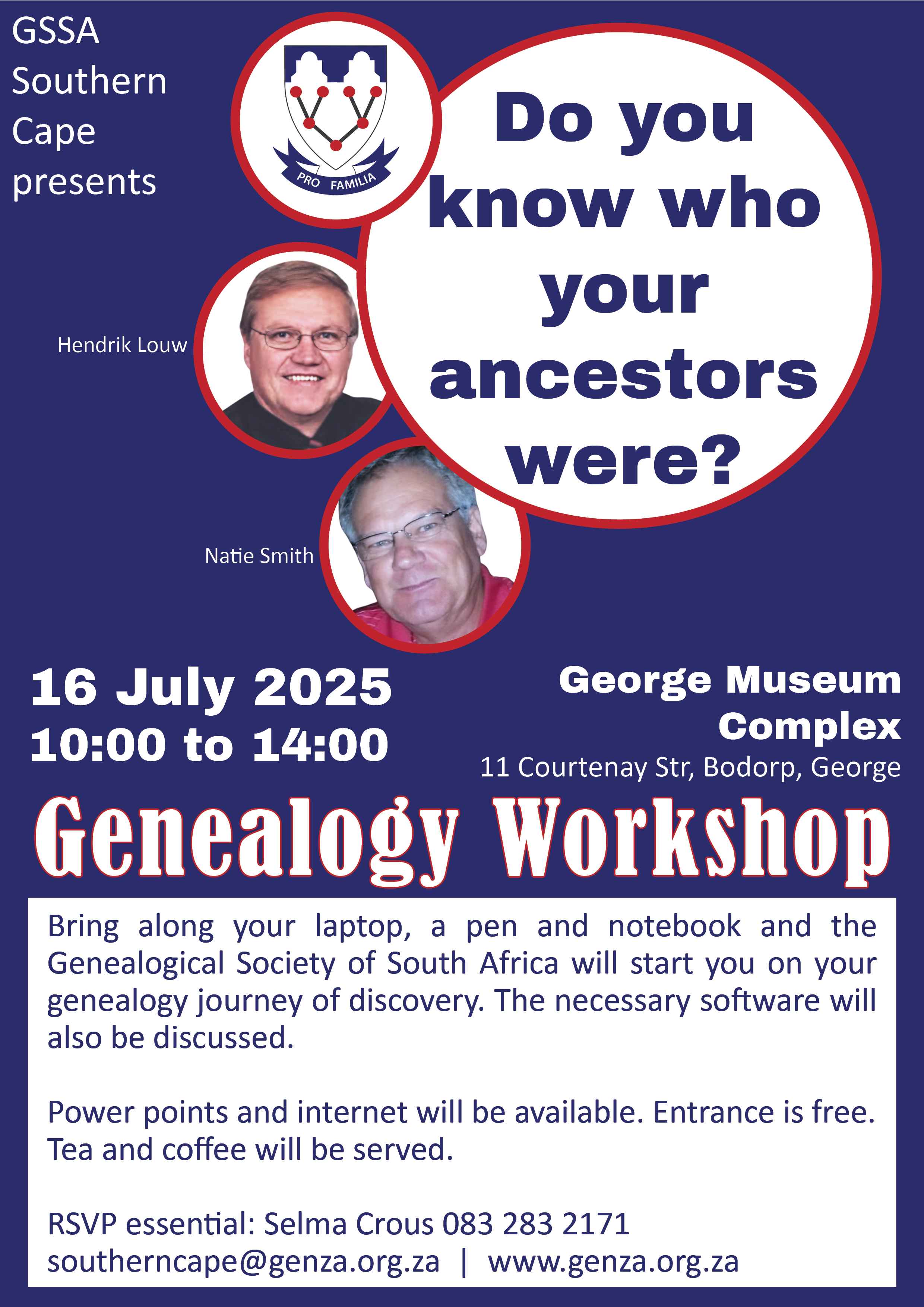 | Genealogy Workshop - View the advert | Natie Smith & Hendrik. Louw | 2025-07-16 | |