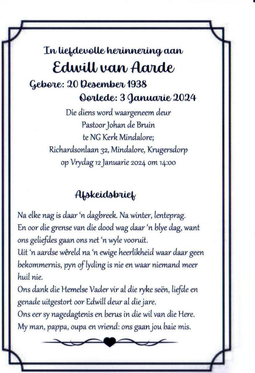 Funeral Programs / Begrafnisbriewe