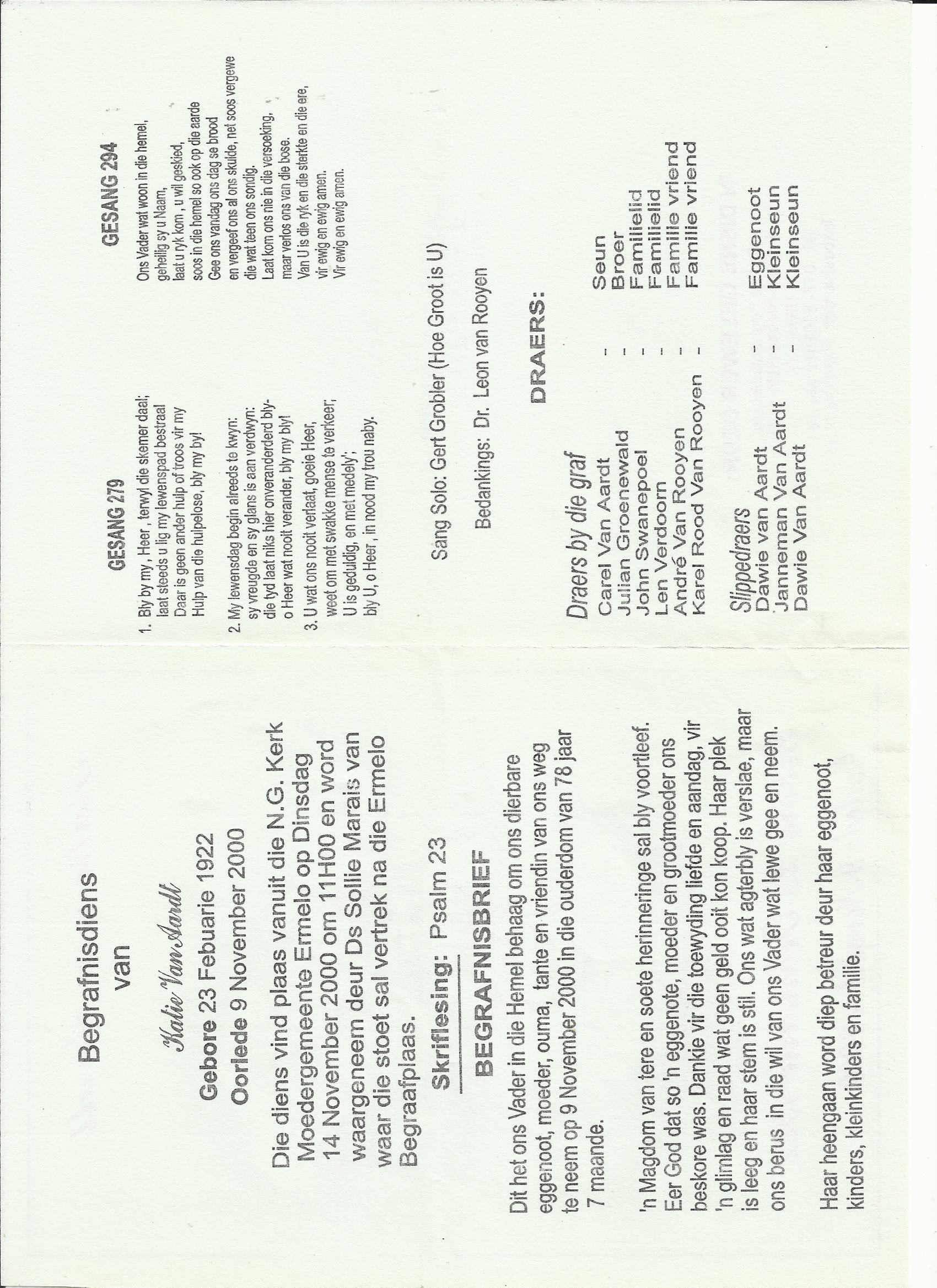 Funeral Programs / Begrafnisbriewe