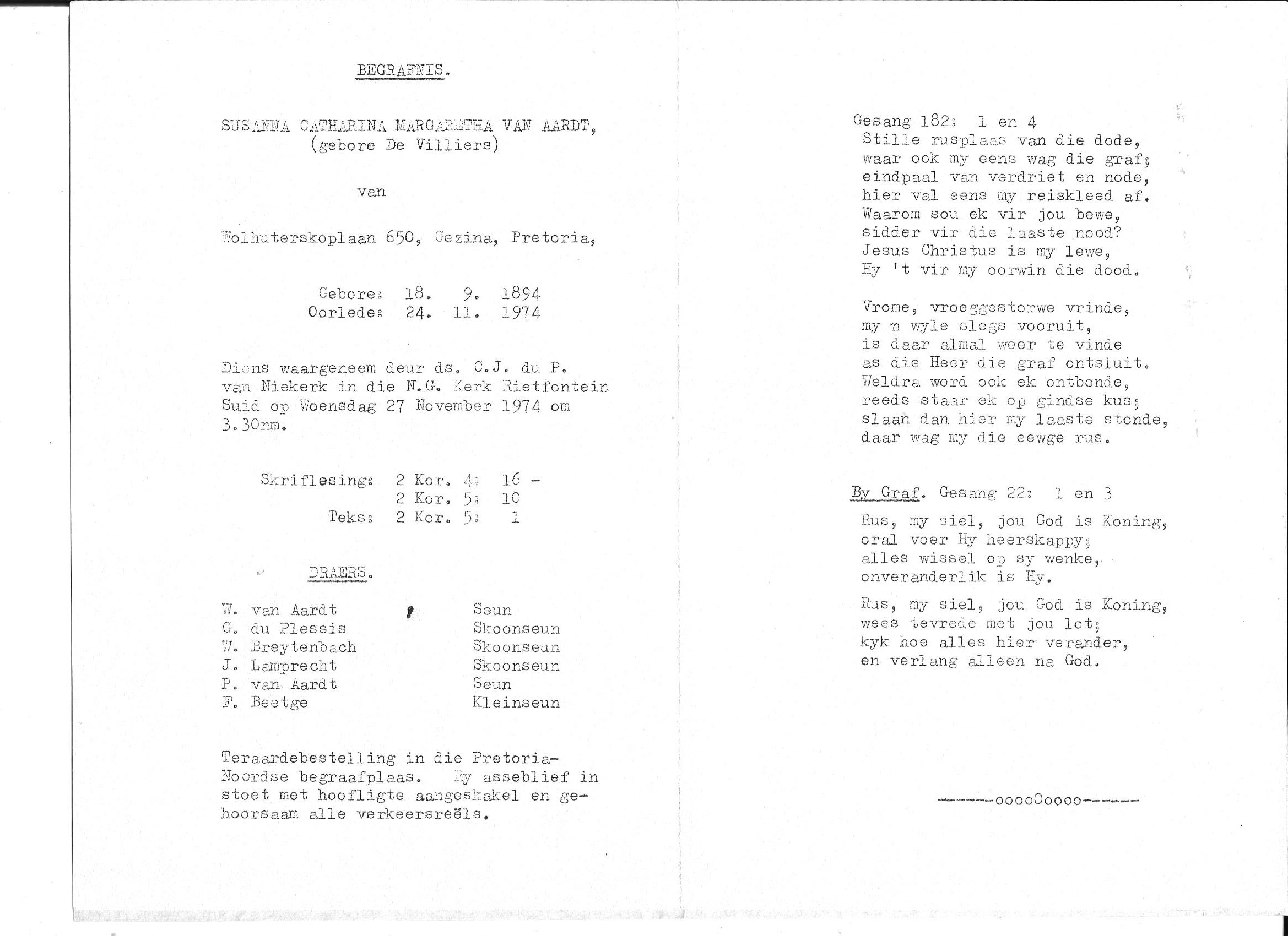 Funeral Programs / Begrafnisbriewe