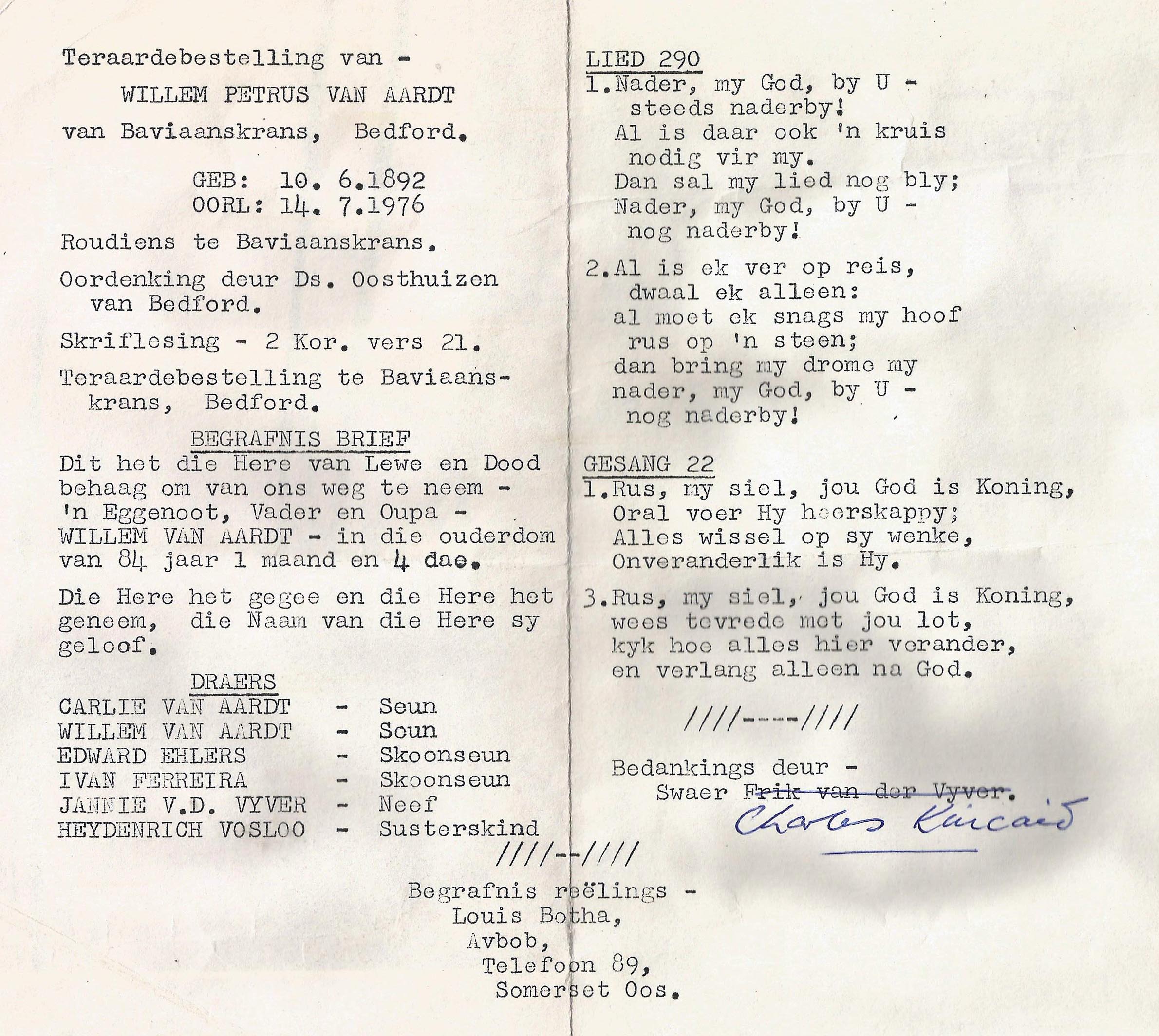 Funeral Programs / Begrafnisbriewe