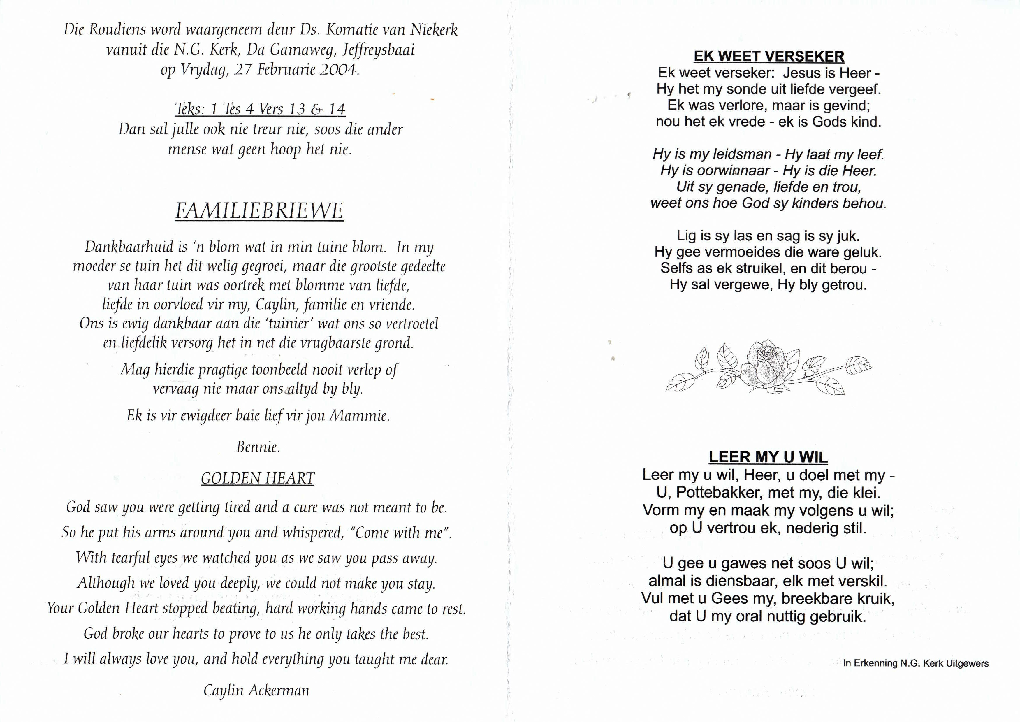 Funeral Programs / Begrafnisbriewe