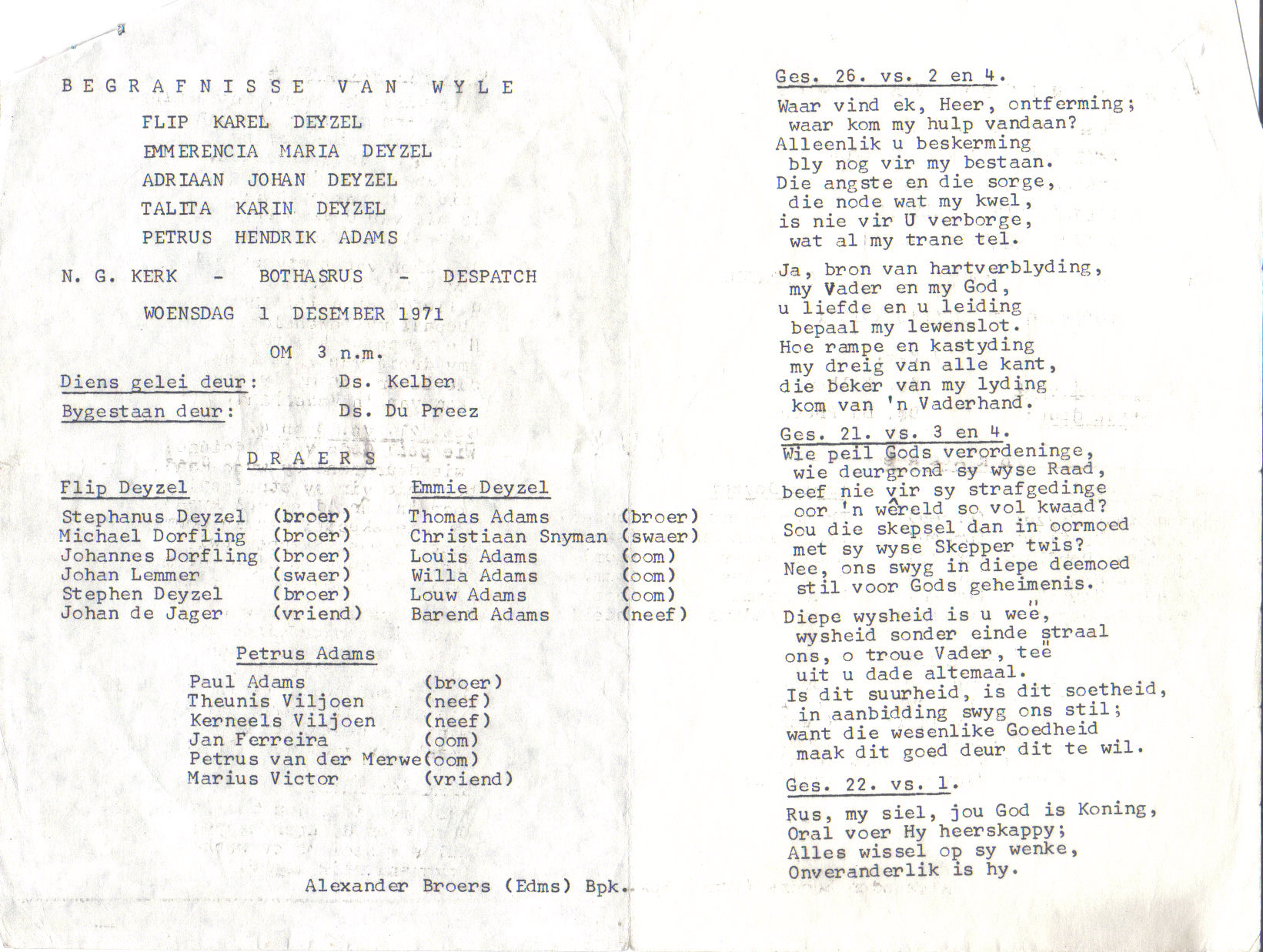 Funeral Programs / Begrafnisbriewe