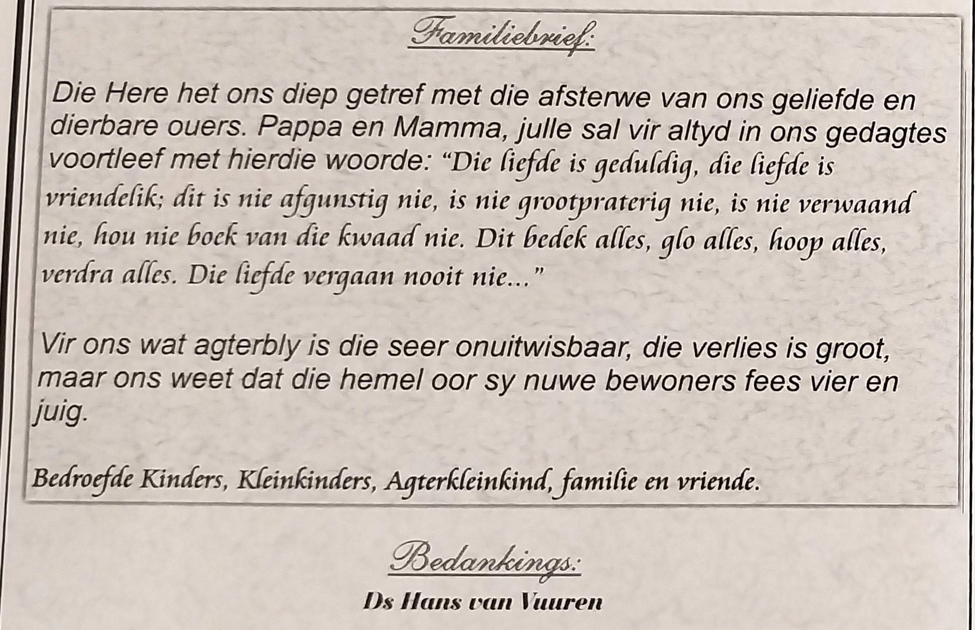 Funeral Programs / Begrafnisbriewe