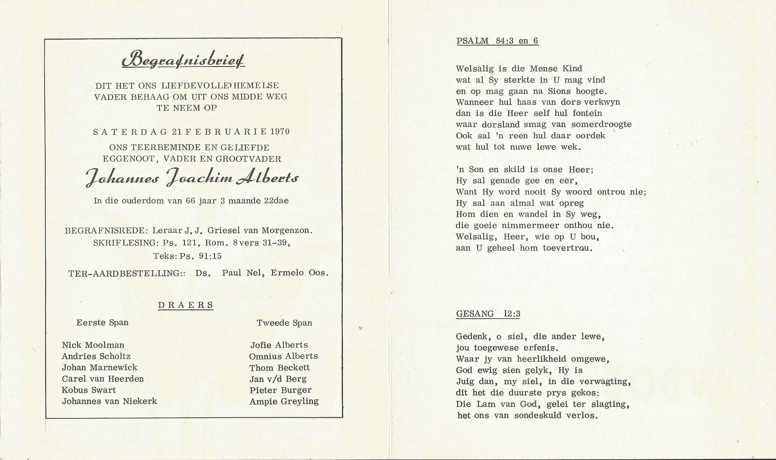 Funeral Programs / Begrafnisbriewe