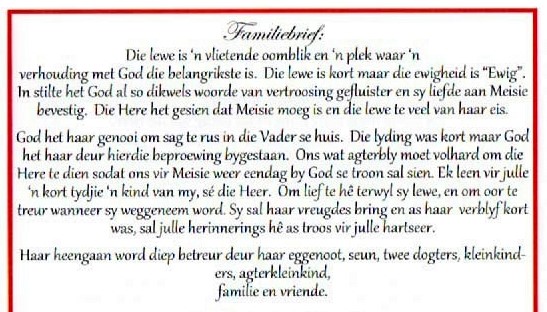 Funeral Programs / Begrafnisbriewe