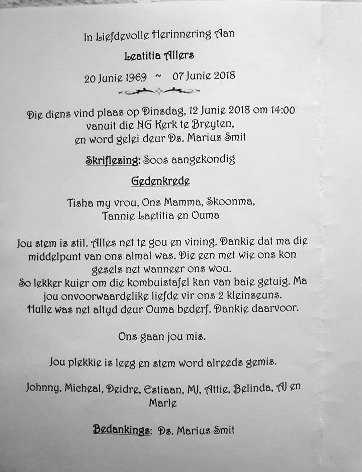 Funeral Programs / Begrafnisbriewe