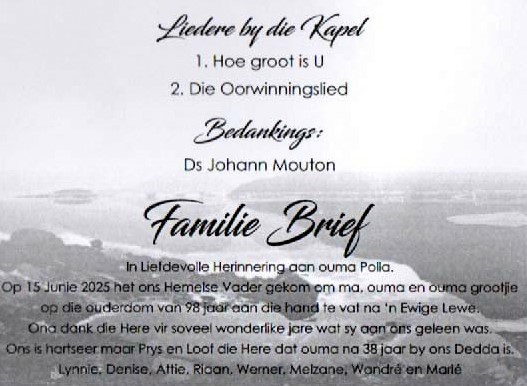 Funeral Programs / Begrafnisbriewe