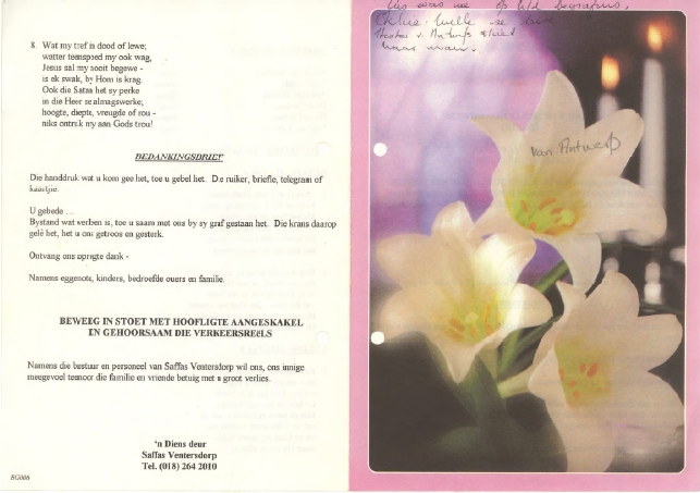 Funeral Programs / Begrafnisbriewe