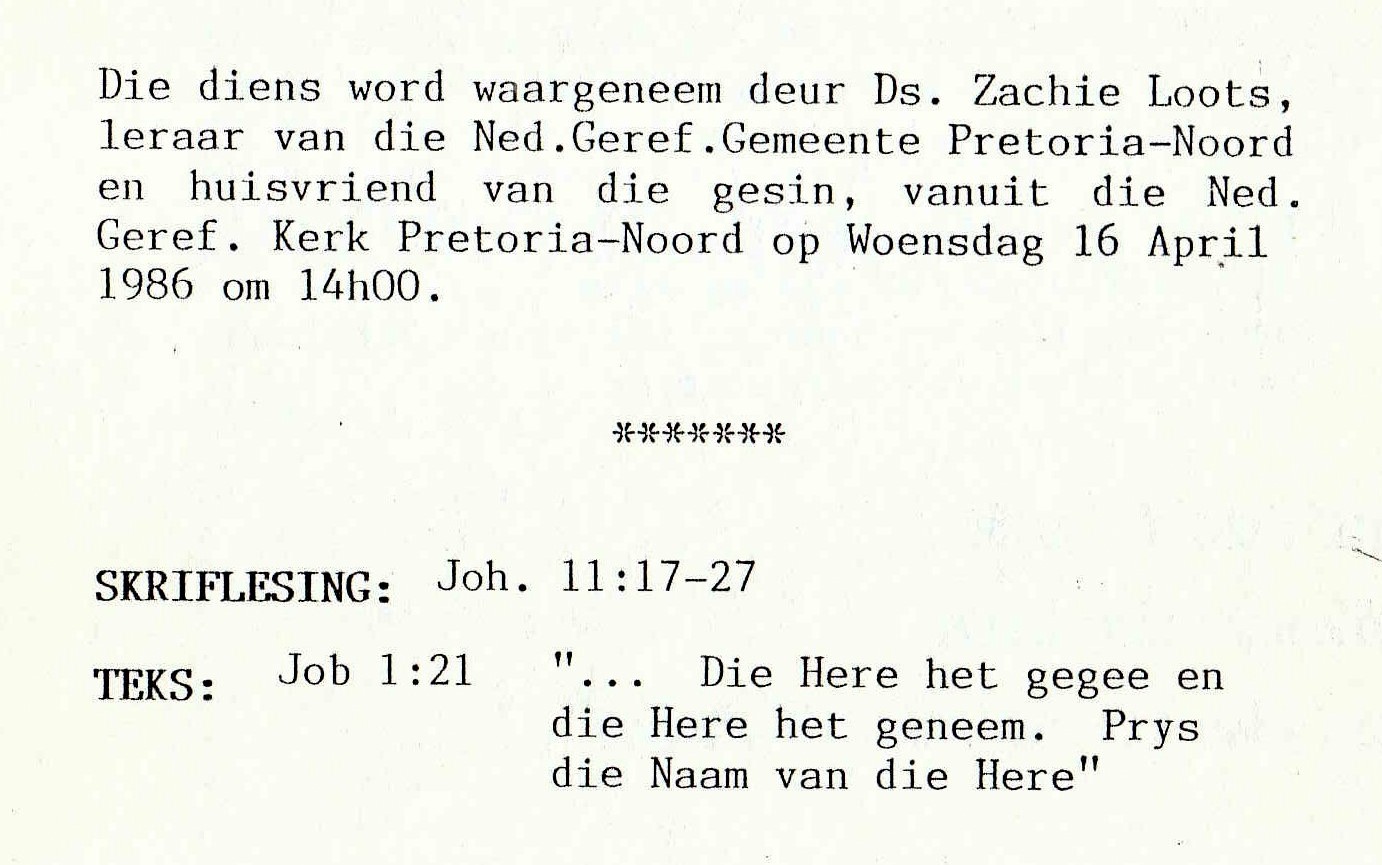 Funeral Programs / Begrafnisbriewe