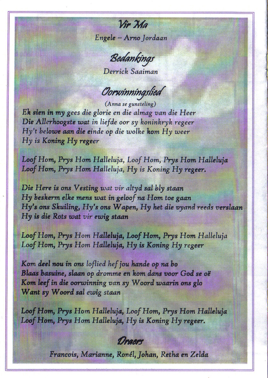 Funeral Programs / Begrafnisbriewe