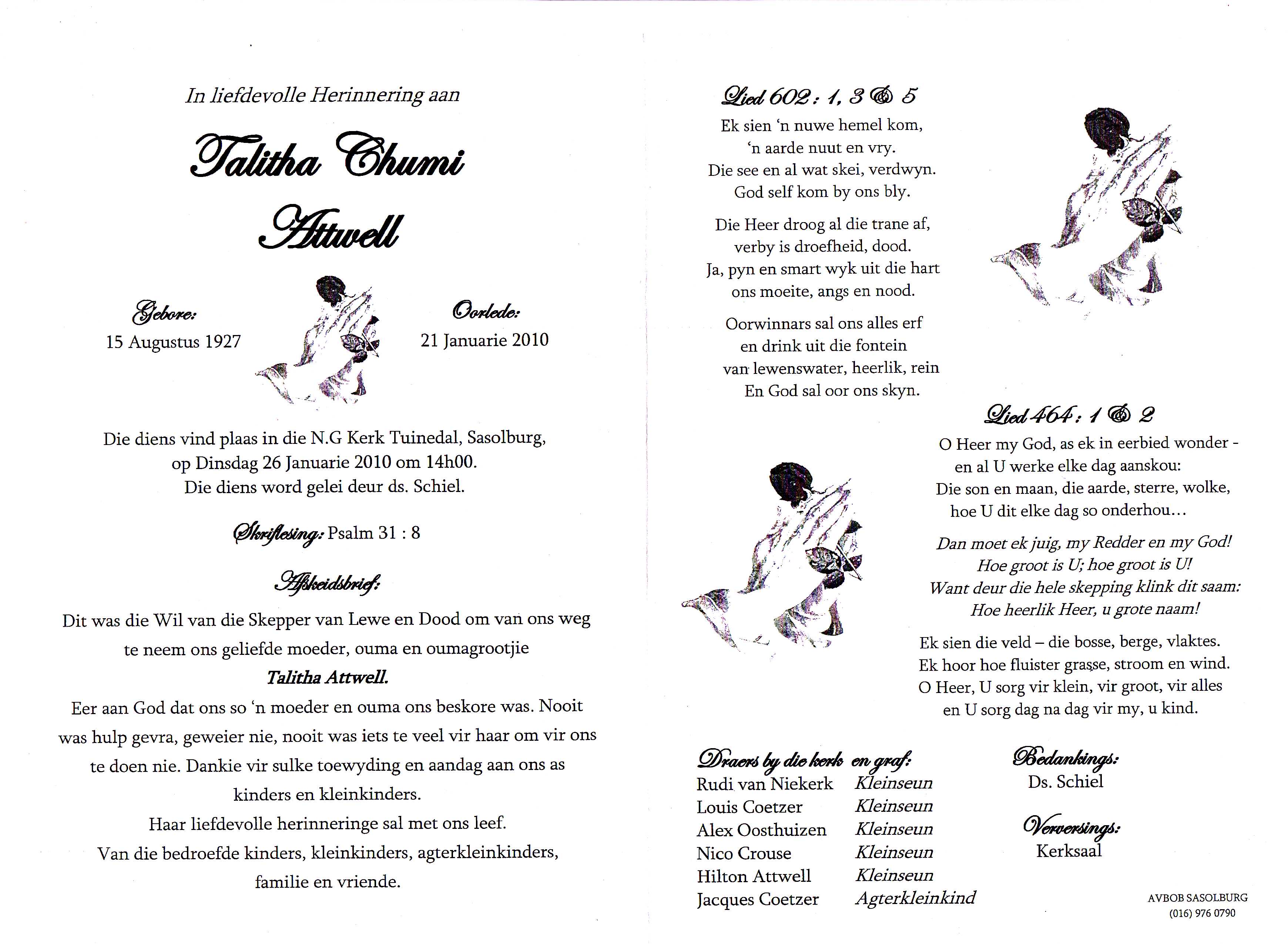 Funeral Programs / Begrafnisbriewe
