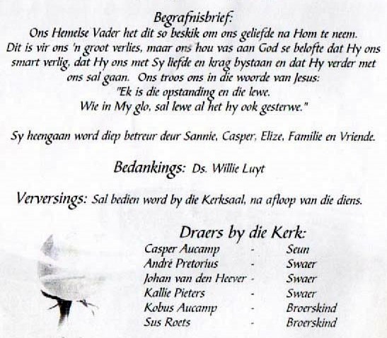 Funeral Programs / Begrafnisbriewe