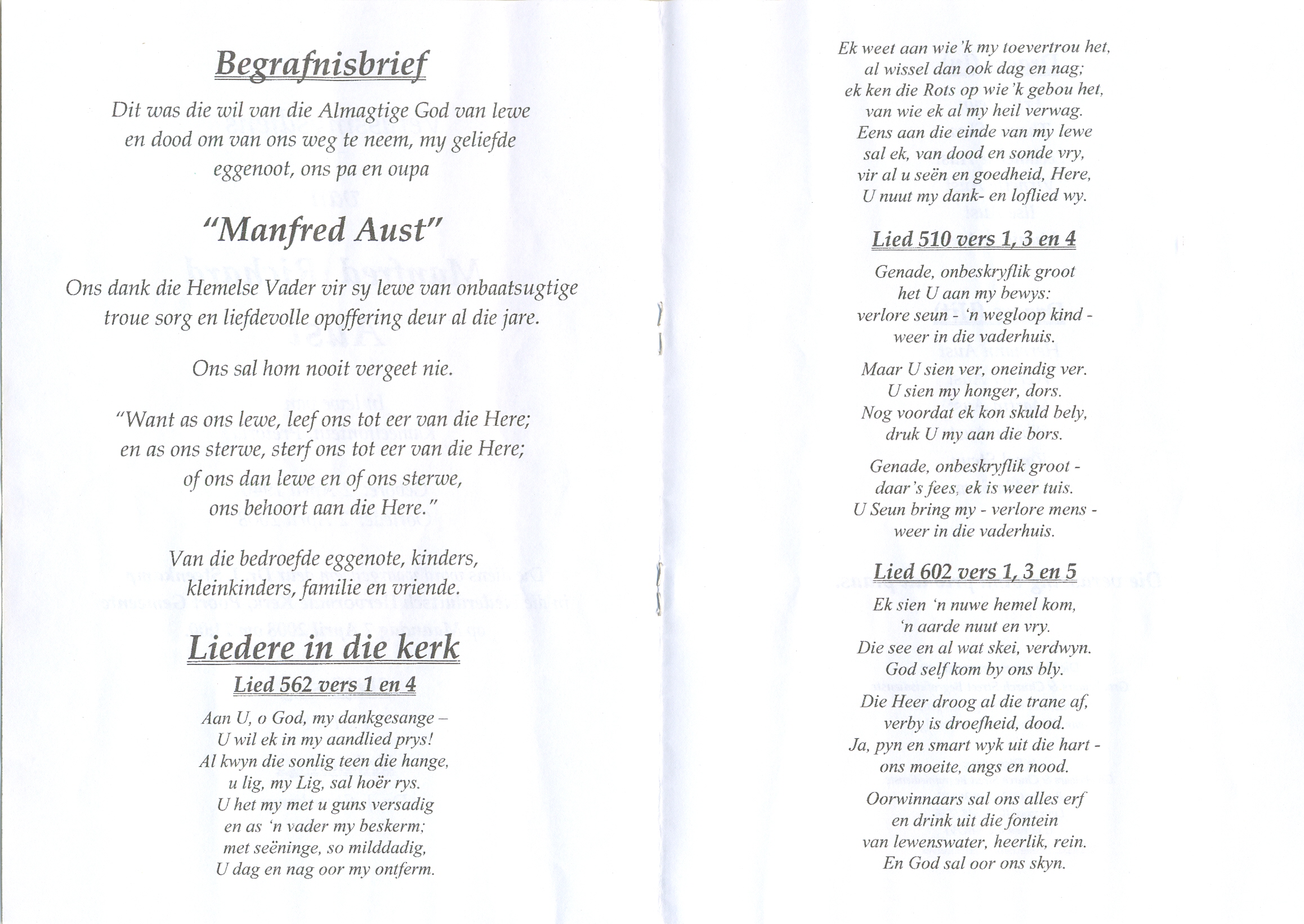 Funeral Programs / Begrafnisbriewe