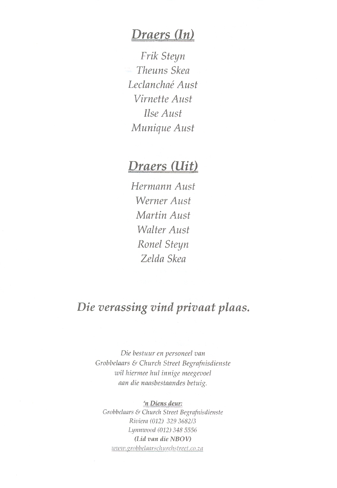 Funeral Programs / Begrafnisbriewe