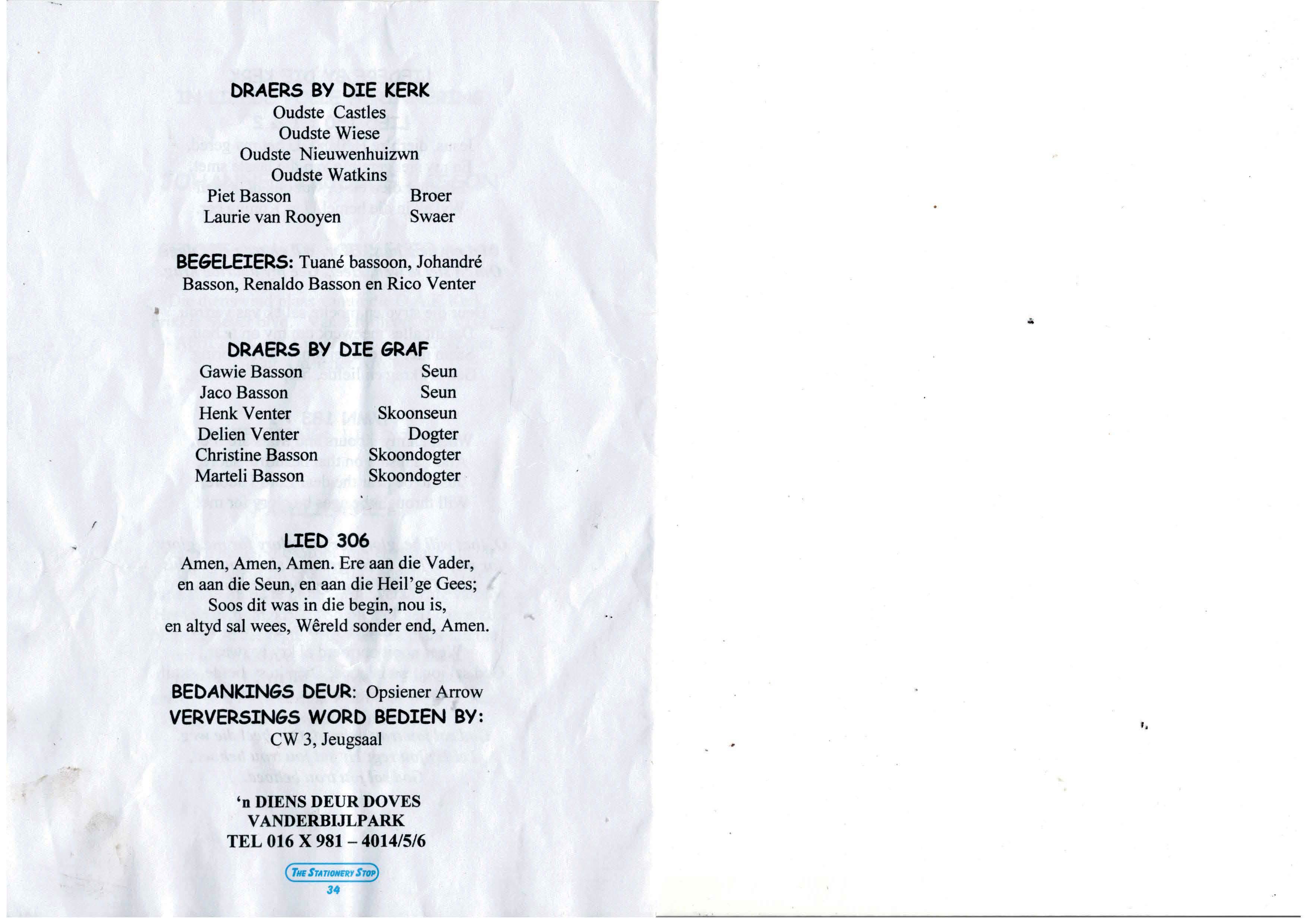Funeral Programs / Begrafnisbriewe