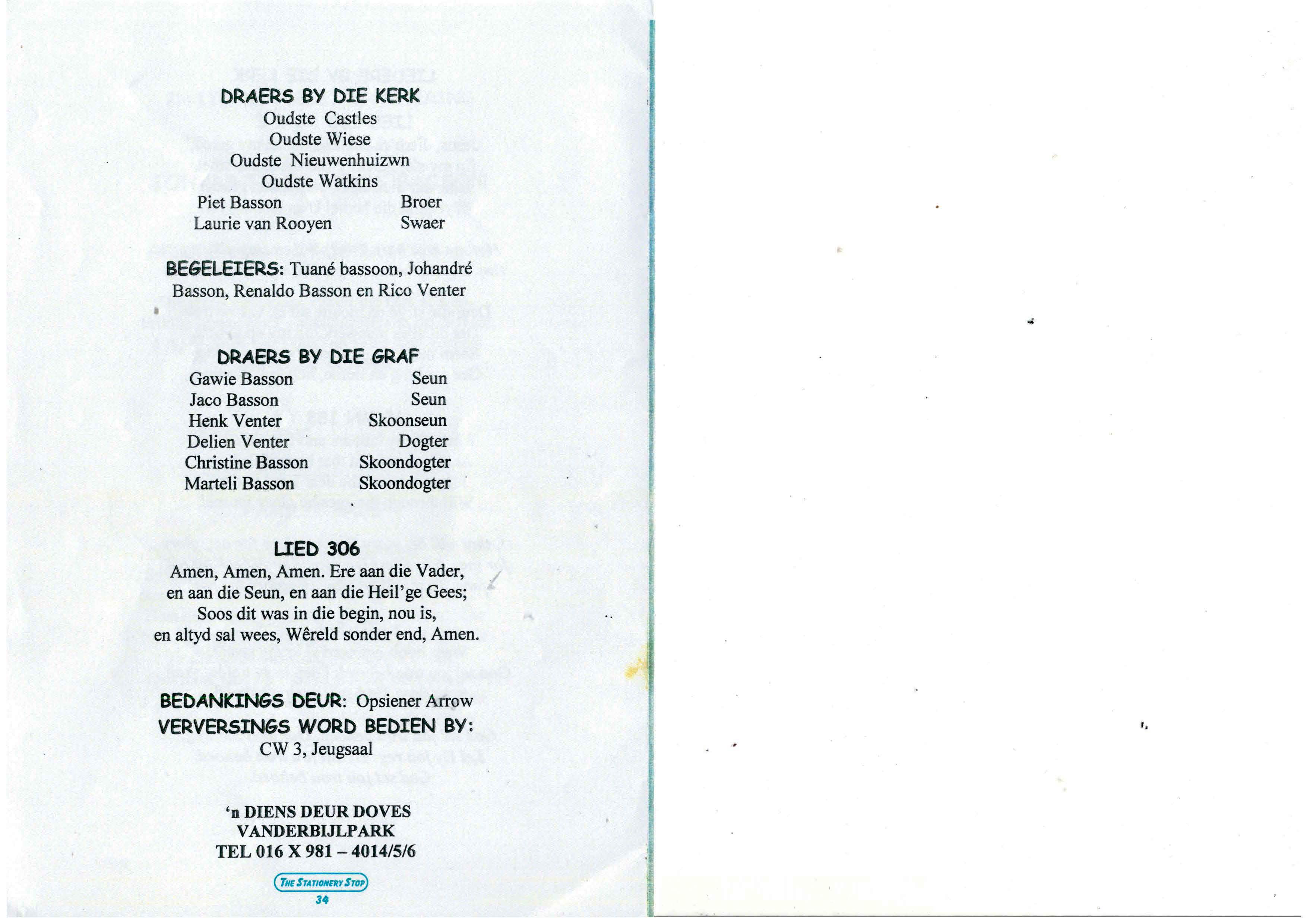Funeral Programs / Begrafnisbriewe
