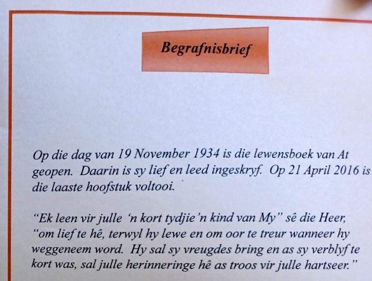 Funeral Programs / Begrafnisbriewe