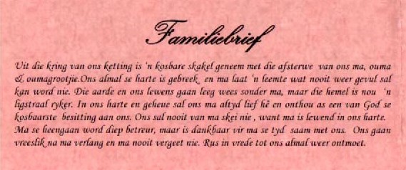 Funeral Programs / Begrafnisbriewe
