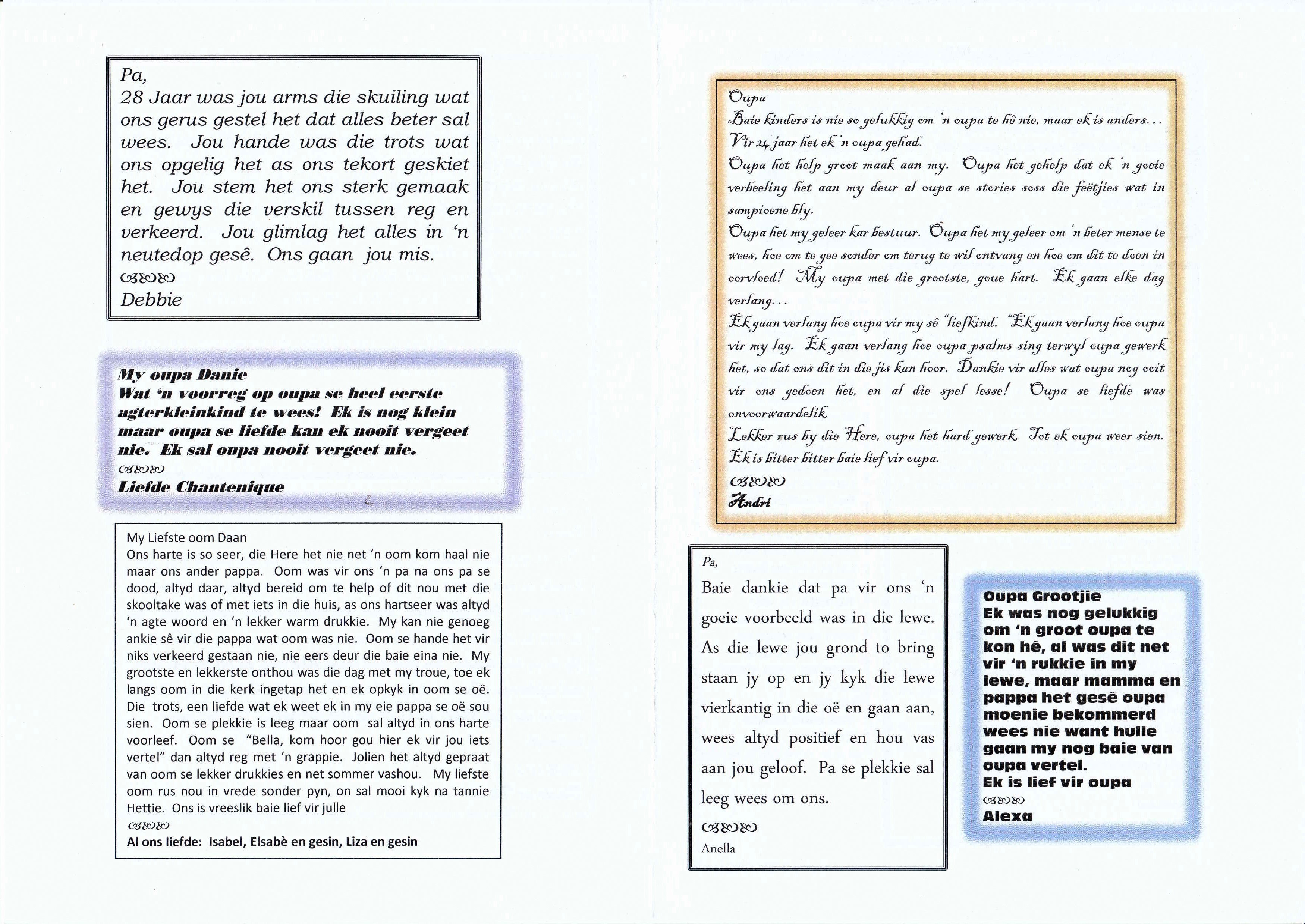 Funeral Programs / Begrafnisbriewe