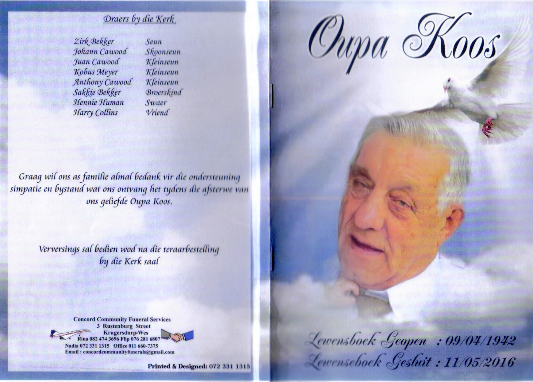Funeral Programs / Begrafnisbriewe