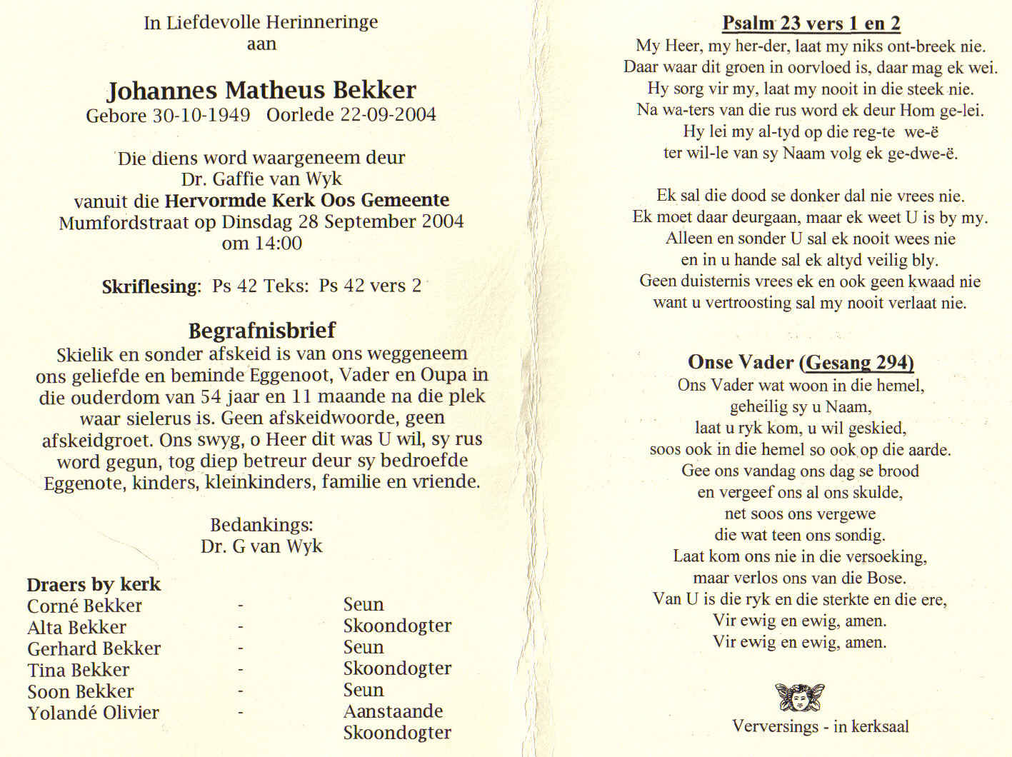 BEKKER-Johannes-Matheus-Nn-Soon-1949-2004-M