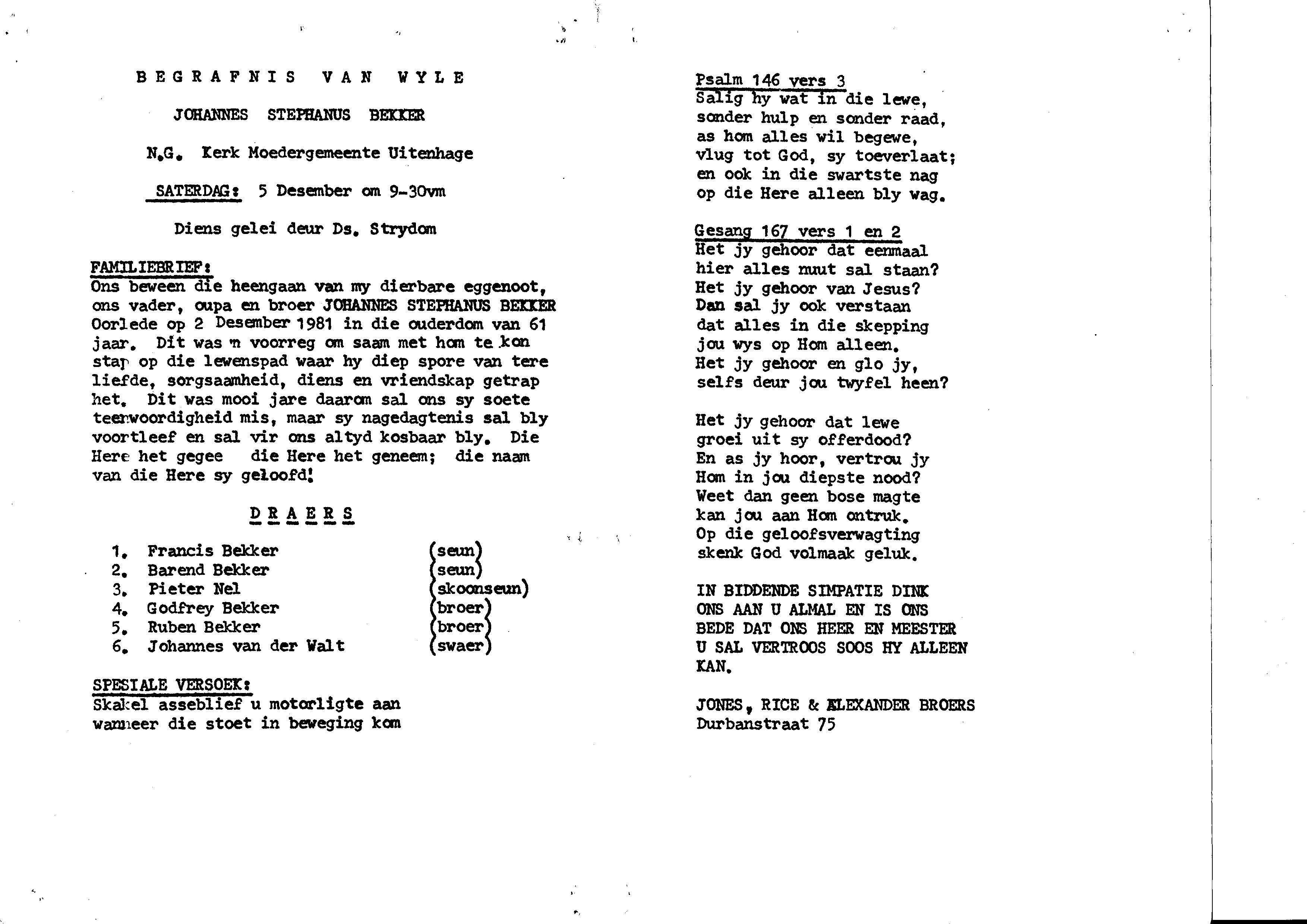Funeral Programs / Begrafnisbriewe