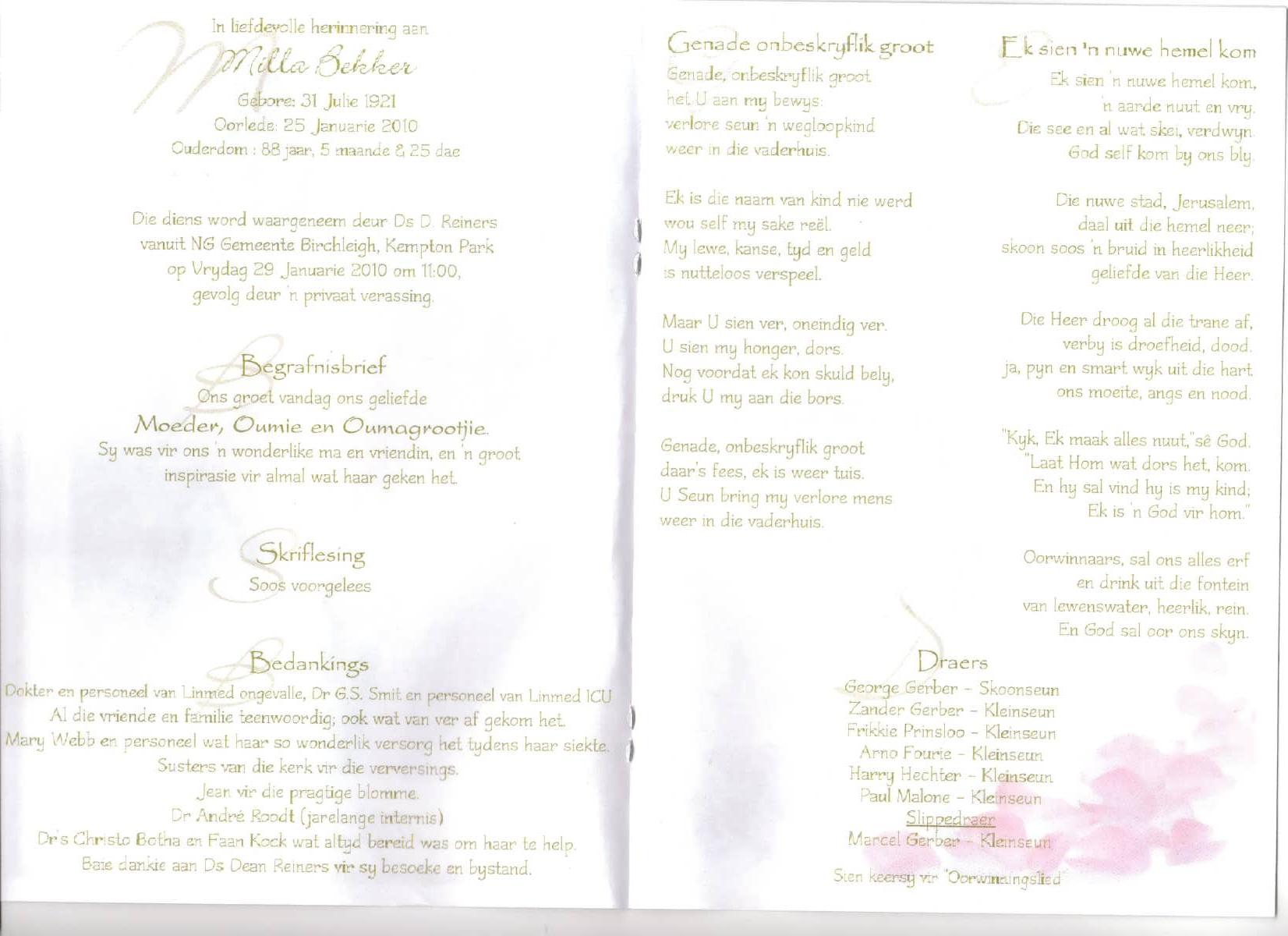 Funeral Programs / Begrafnisbriewe