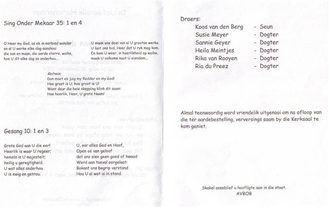 Funeral Programs / Begrafnisbriewe