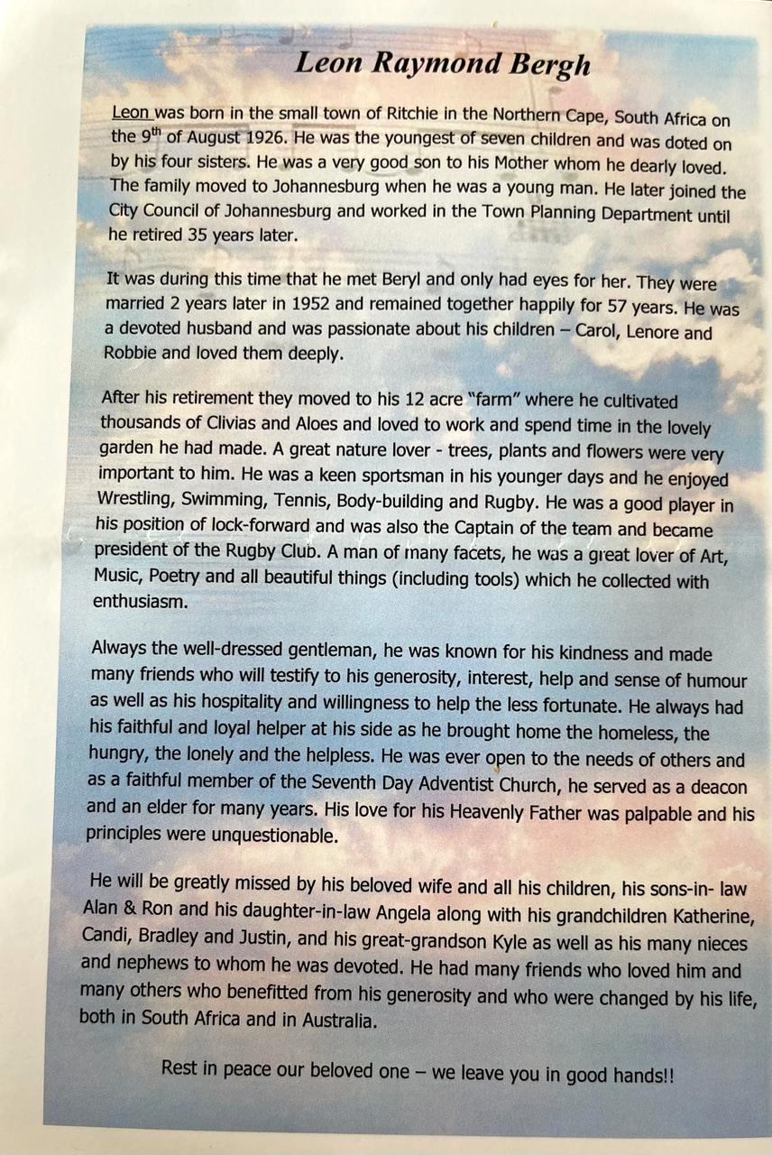 Funeral Programs / Begrafnisbriewe