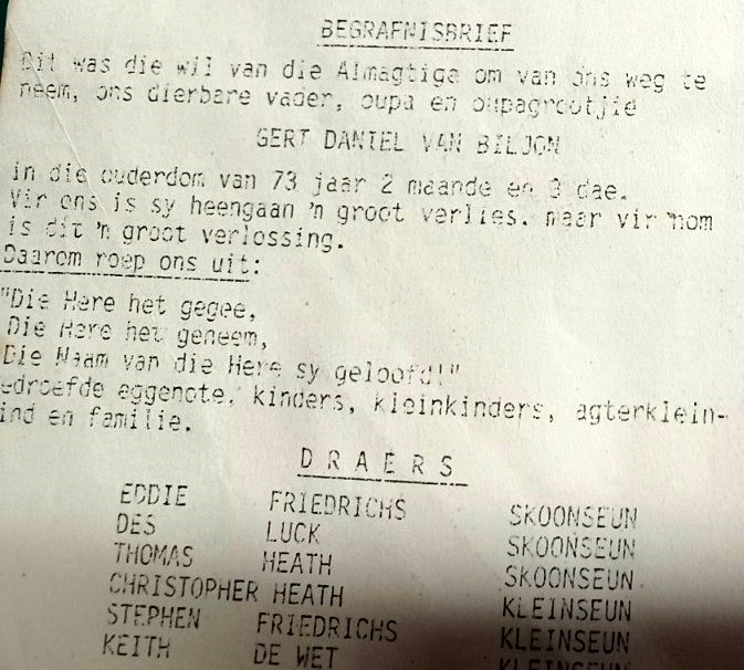 Funeral Programs / Begrafnisbriewe