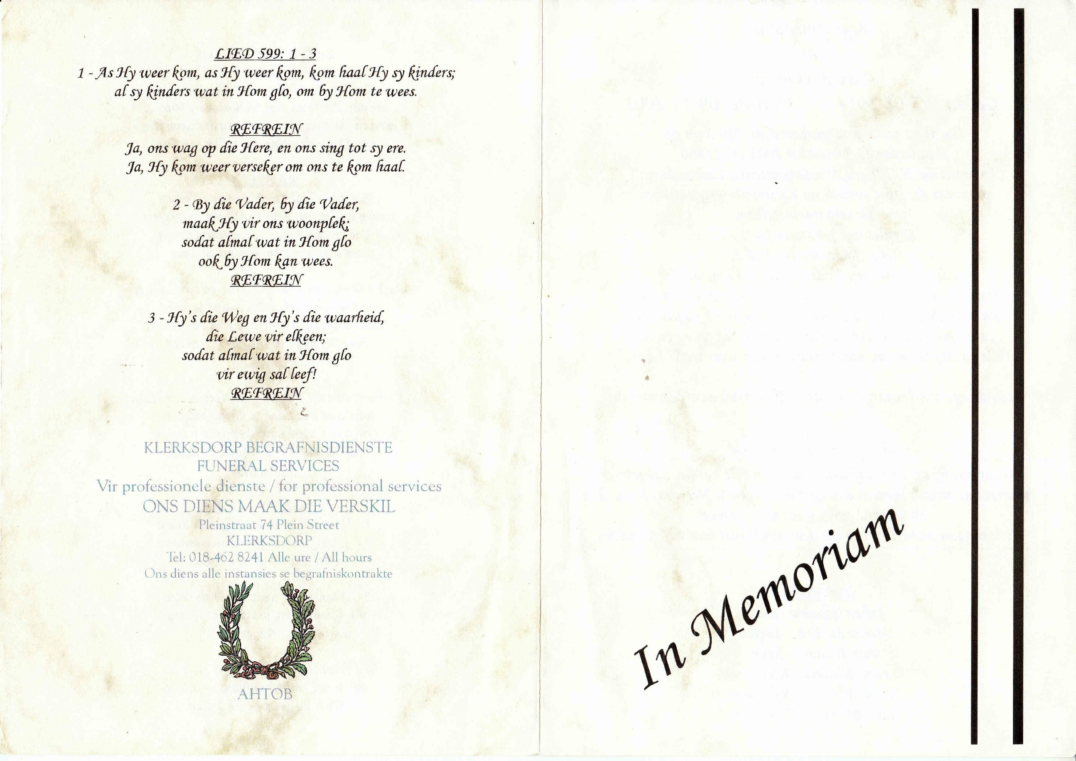 Funeral Programs / Begrafnisbriewe