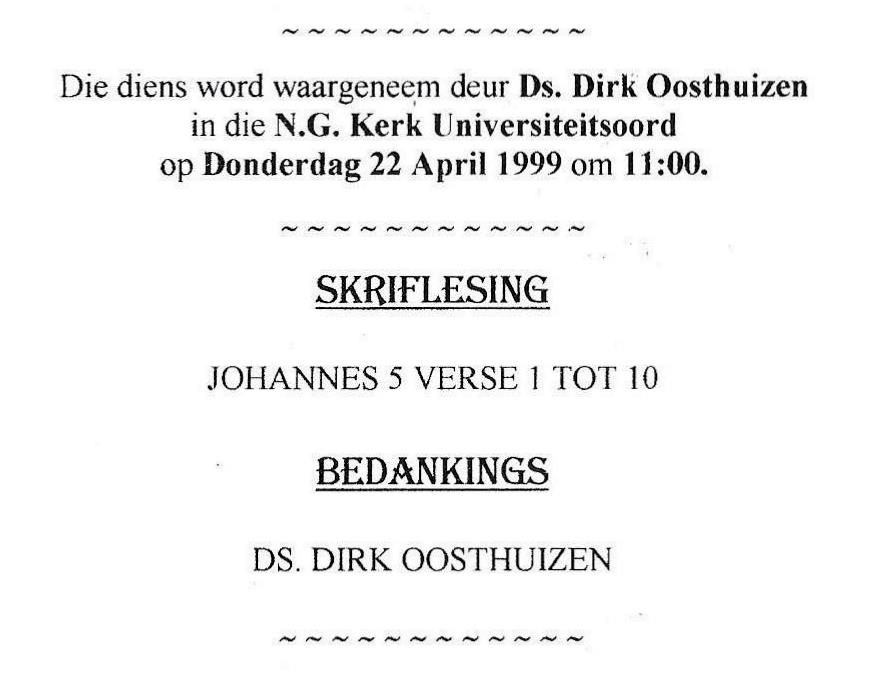 Funeral Programs / Begrafnisbriewe