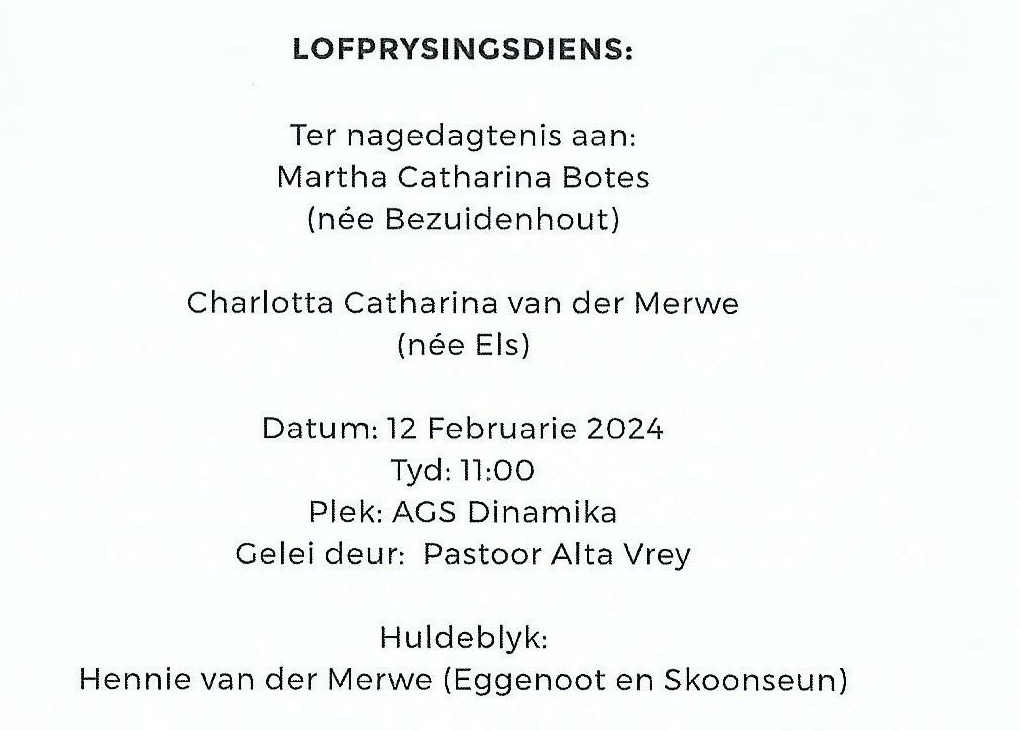 BOTES-Martha-Catharina-Nn-Catharina-nee-Bezuidenhout-1943-2024-F---MERWE-VAN-DER-Charlotta-Catharina-Nn-Lottie-nee-Els-1974-2024-F