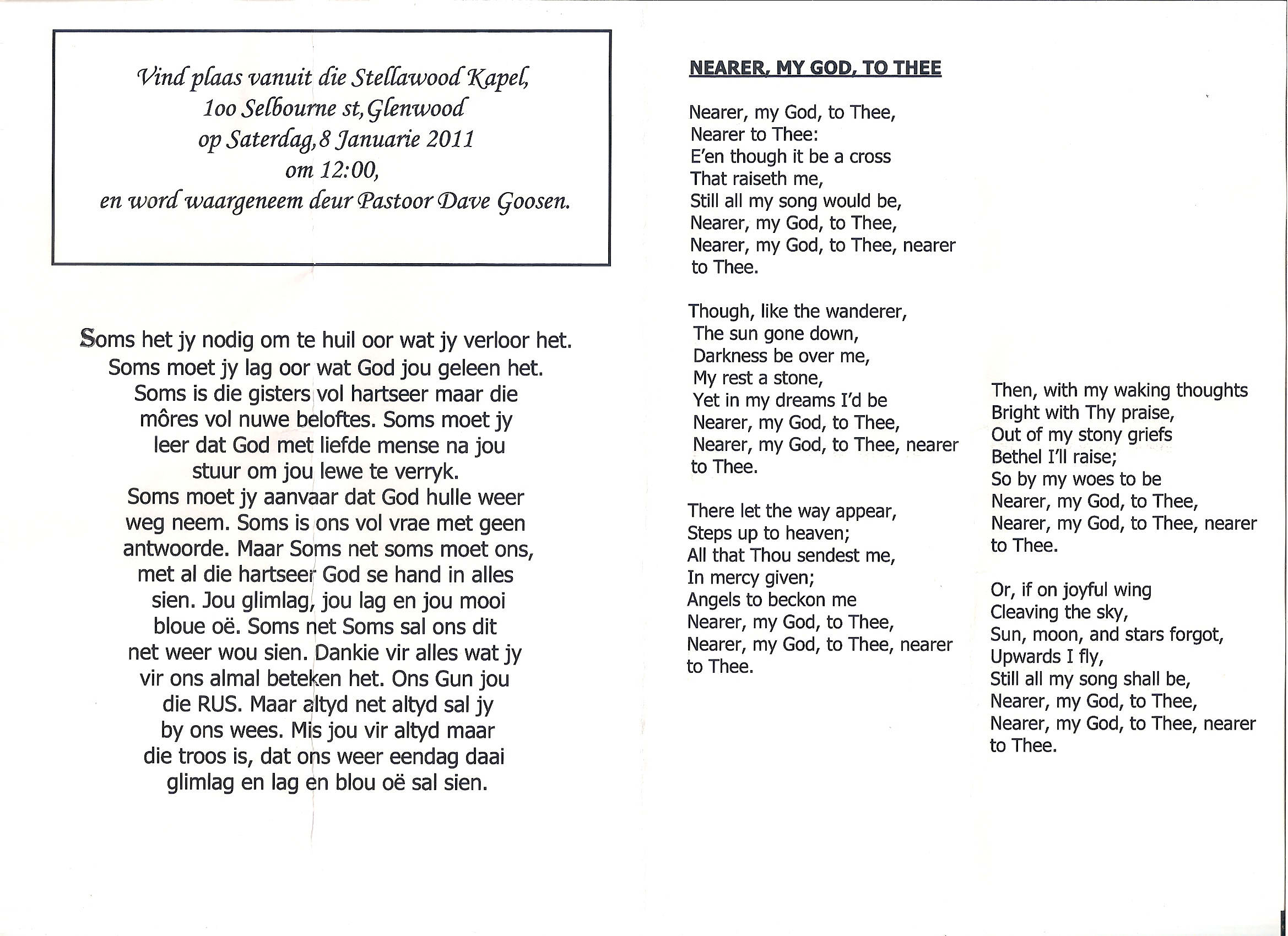 Funeral Programs / Begrafnisbriewe