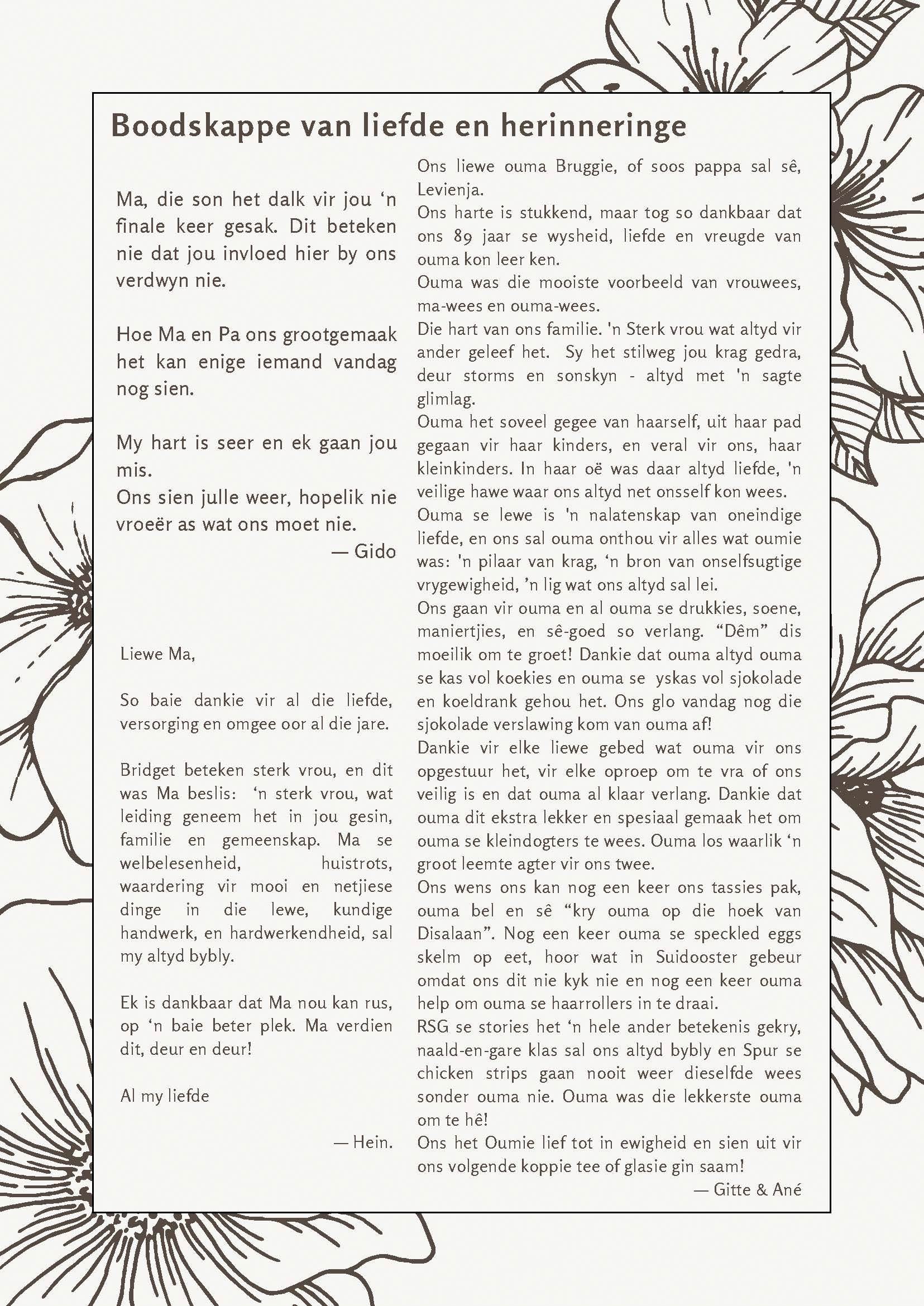 Funeral Programs / Begrafnisbriewe