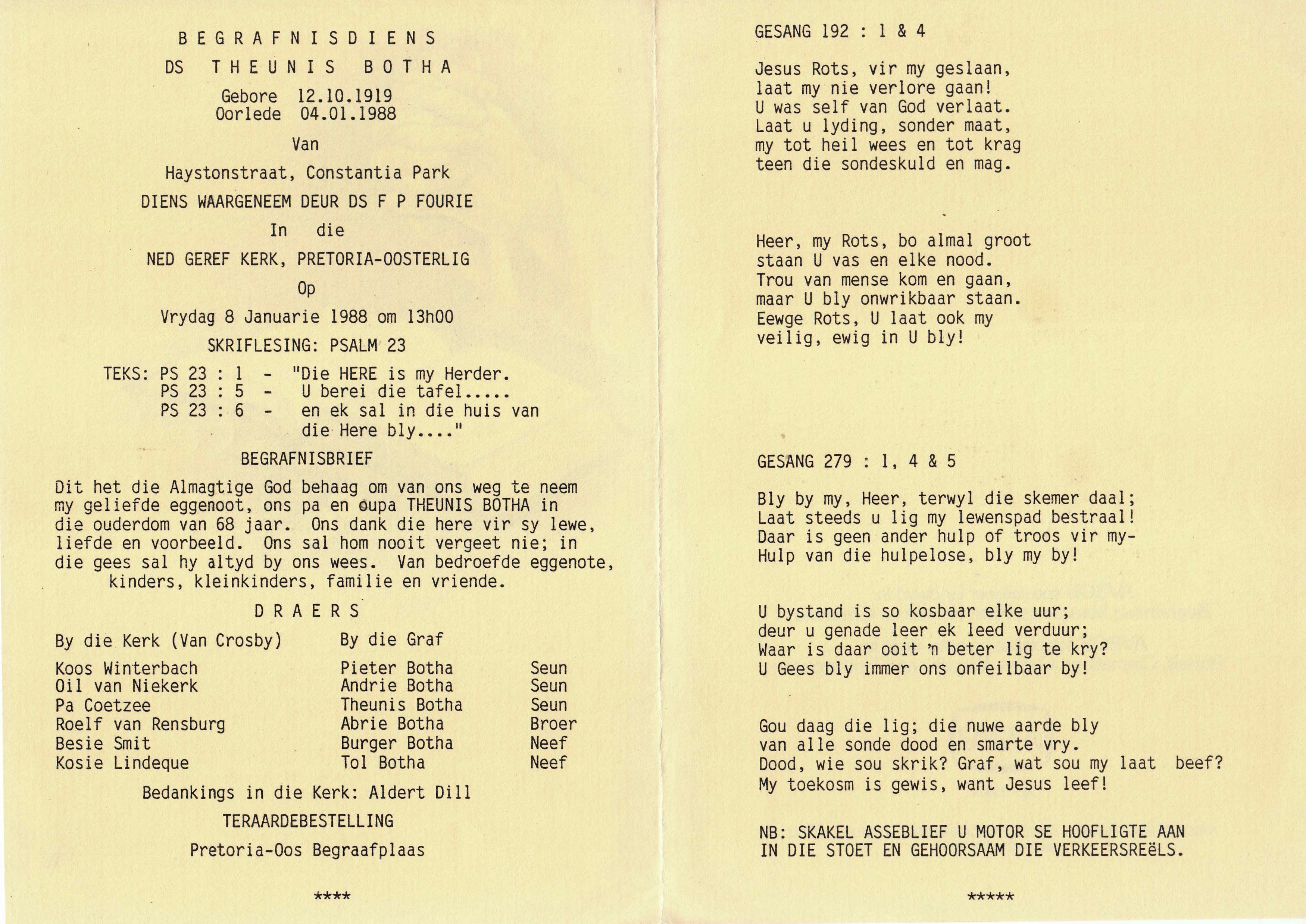 Funeral Programs / Begrafnisbriewe