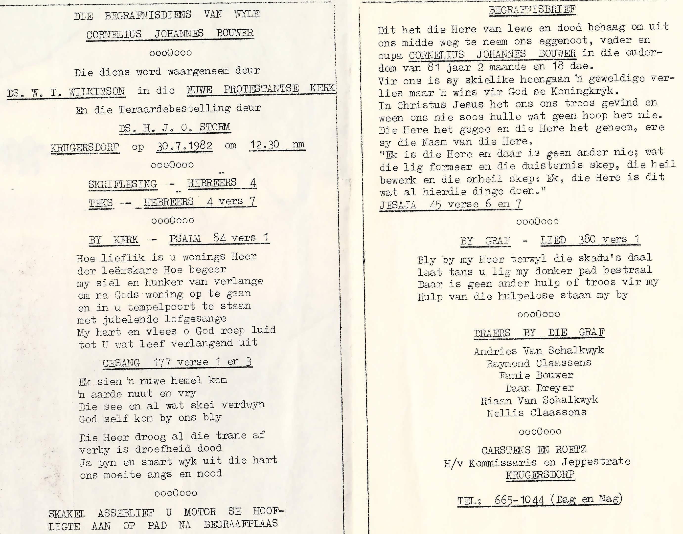 Funeral Programs / Begrafnisbriewe