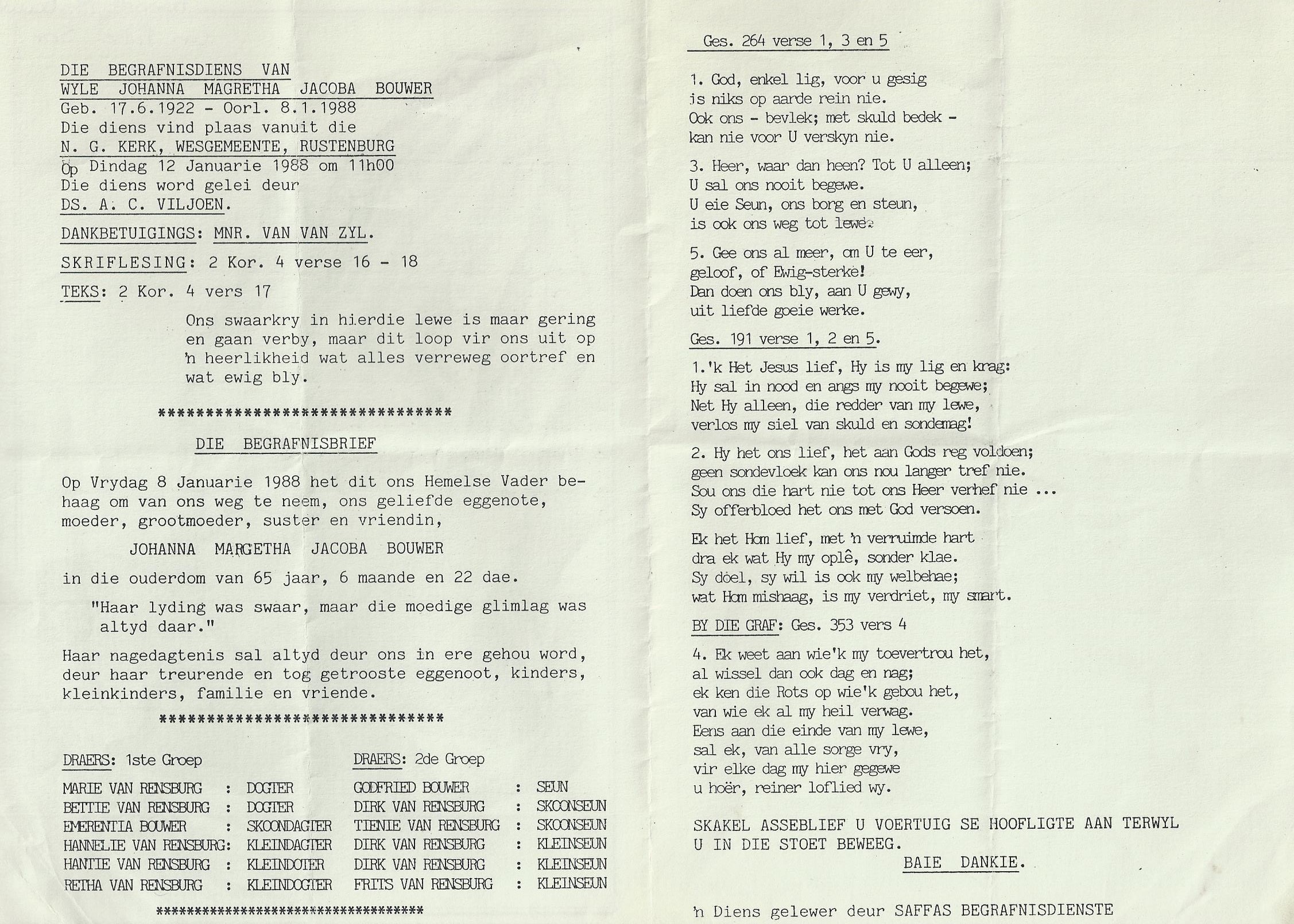 Funeral Programs / Begrafnisbriewe