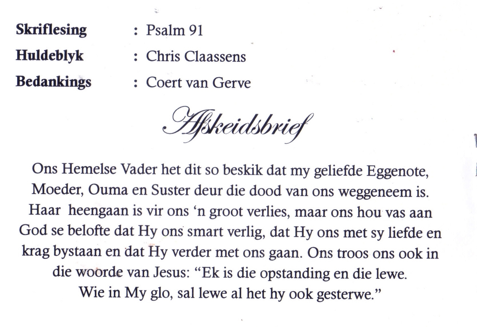 Funeral Programs / Begrafnisbriewe