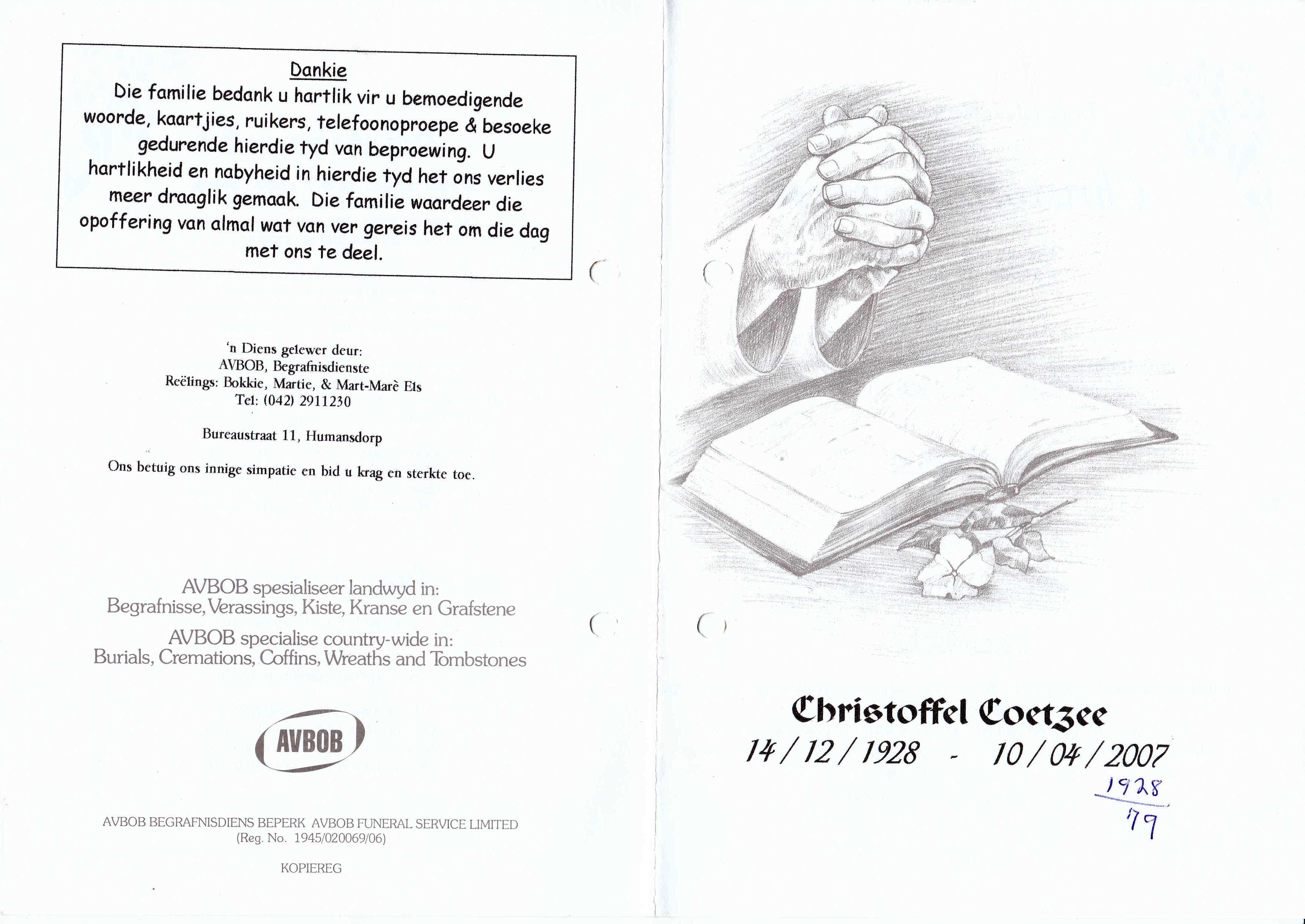 COETZEE-Christoffel-1928-2007-M