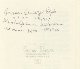 Funeral Programs / Begrafnisbriewe