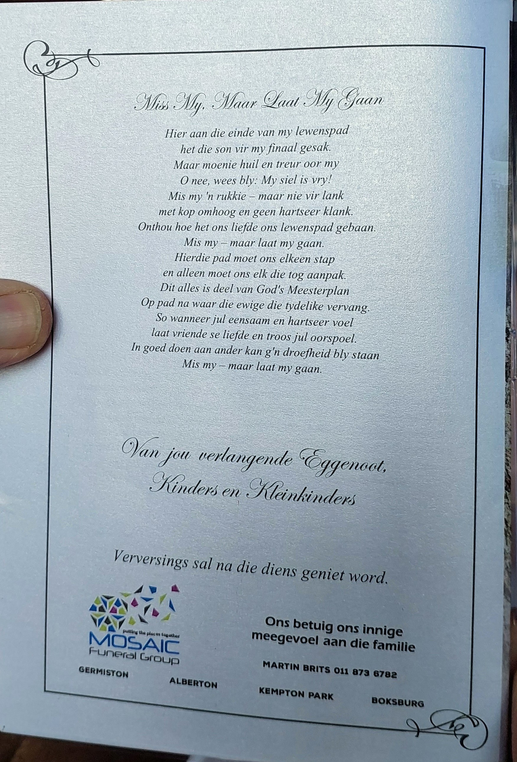 Funeral Programs / Begrafnisbriewe