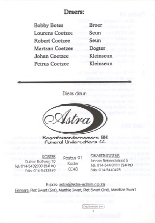 Funeral Programs / Begrafnisbriewe