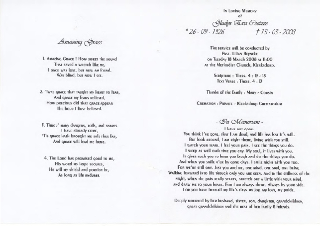 Funeral Programs / Begrafnisbriewe