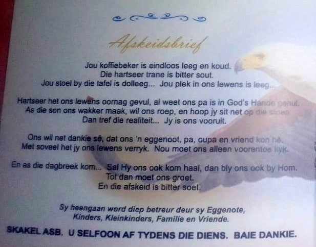 Funeral Programs / Begrafnisbriewe