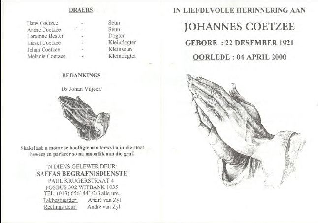 Funeral Programs / Begrafnisbriewe
