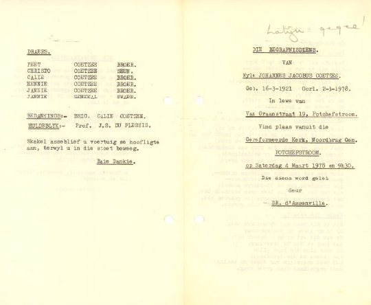 Funeral Programs / Begrafnisbriewe