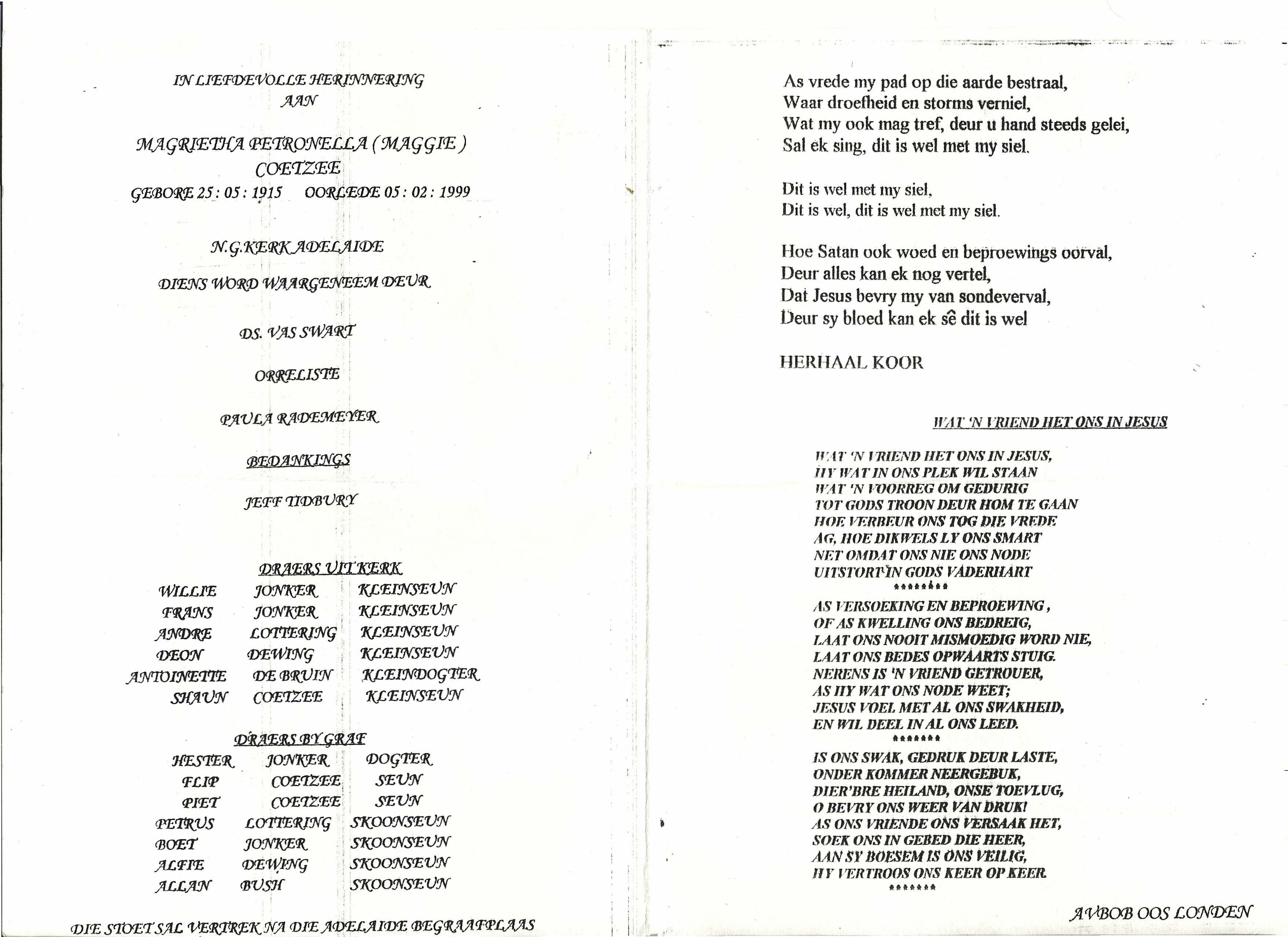 COETZEE-Magrietha-Petronella-1915-1999-F