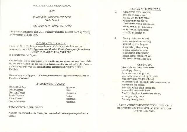 Funeral Programs / Begrafnisbriewe